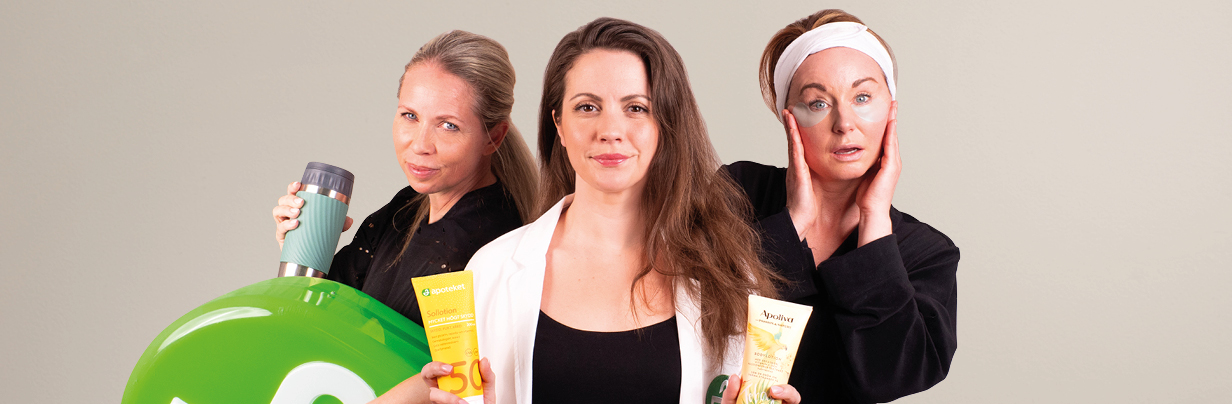 Tillsammans bollar de frågor om allt från hudvårdsrutiner och hormonförändringar till barnens behov och medias inflytande kring hälsa och välmående. Med hjälp av experter från Apoteket navigerar de sig genom vardagspusslet och hittar svar på frågor många av oss går runt och bär på.
