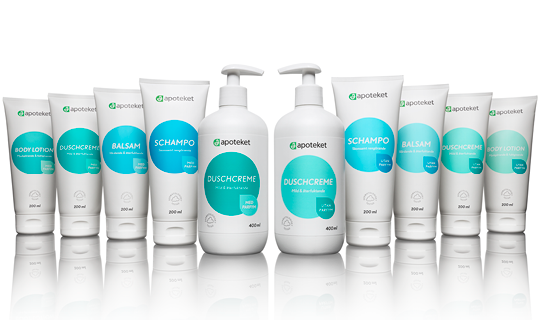 Apoteket hudvårdsprodukter riktar sig till hela familjen och passar alla hudtyper. Det är prisvärda produkter i stora, praktiska och hygieniska förpackningar. I serien ingår kroppslotion, duschcreme och hårvård, med och utan parfym, fotfilar, nagelsaxar, bomull med mera. Alla produkter finns även i mindre förpackningar som är lätta att ta med sig.