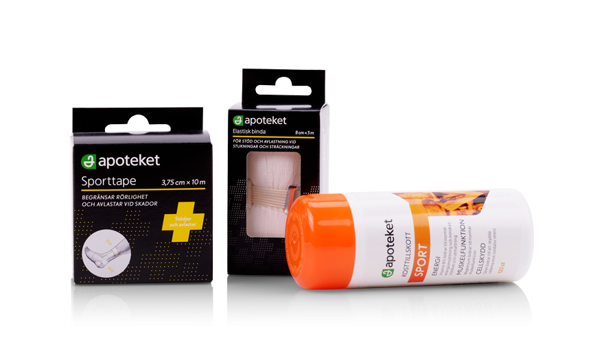 Apotekets egna sportprodukter för sportskador. Produkterna finns även som kosttillskott. Produkterna är noga utvalda och framtagna för bästa funktion för idrottsutövaren.