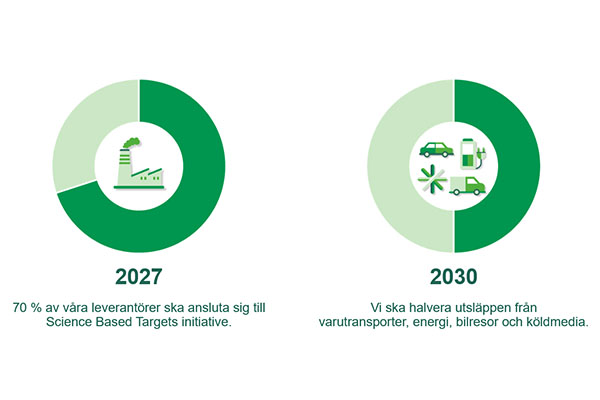 Målet är att 70 procent av våra leverantörer ska vara anslutna till Science Based Targets Initiative 2027. Totalt har vi nu 84 leverantörer med satta klimatmål.