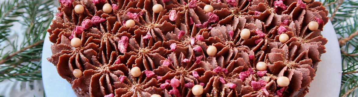 Dekorationstips: Färska eller frystorkade hallon för att ge lite syra till kakan.