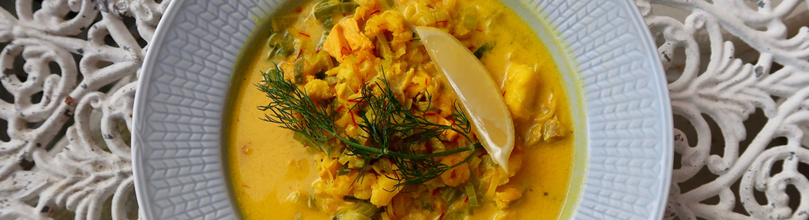 Blanda ner fisken, saffran, buljong, vatten och vin.