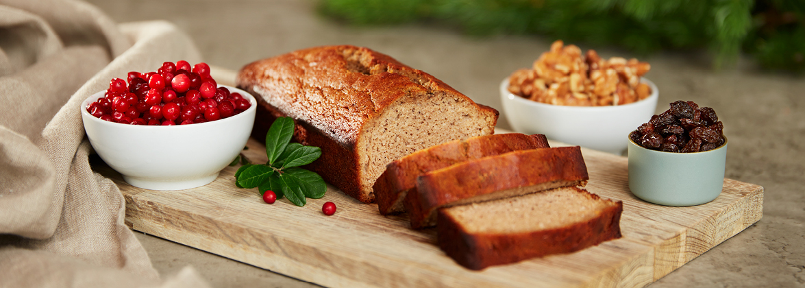 Bara doften av denna saftiga och söta kaka i ugnen får dig att komma i julstämning. Ingen kommer märka att den inte innehåller något tillsatt socker. Dessutom är den fri från gluten och mejeriprodukter, fylld med vitaminer, mineraler och fibrer. God jul!
