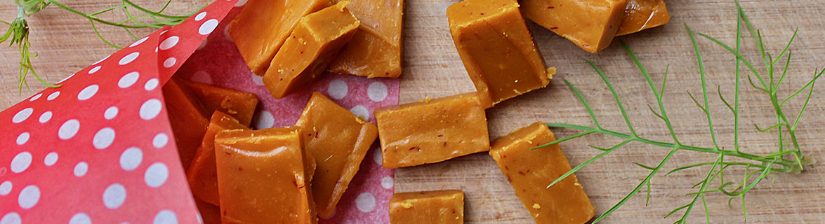 Ta av från plattan och rör ner hackad vit choklad och saffran.
