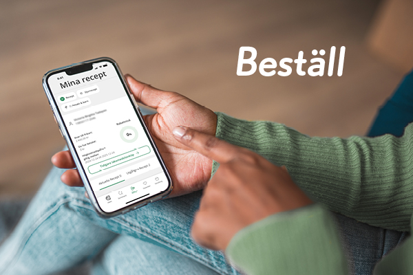 På apoteket.se och i vår app kan du enkelt beställa och förnya dina recept. Välj om du vill få hemleverans, hämta ut på ditt apotek eller hos ett apoteksombud. Logga in för att se dina recept och beställ fraktfritt!