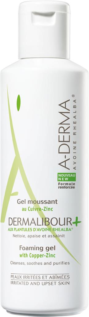 A-Derma Dermalibour+ Foaming Gel är en mjukt löddrande rengöringsgel som rengör och lugnar irriterad hud hos alla i familjen – både baby, äldre barn och vuxna.   A-Derma Dermalibour+ Foaming Gel svider inte i ögonen och kan användas för ansikte, kropp och yttre slemhinnor samt för tvätt av känsliga händer – den fungerar utmärkt som daglig handtvål vid t ex handeksem.    -          främjar hudens läkningsprocess -          lugnande och mjukgörande -          rengör och lugnar irriterad hud hos alla i familjen -          oparfymerad -          parabenfri -          hypoallergen       Ger effektiv rengöring samtidigt som den skyddar huden mot yttre faktorer och verkar lugnande och mjukgörande.   Bruksanvisning: Applicera A-Derma Dermalibour+ Foaming Gel en till två gånger dagligen på fuktad hud. Skölj sedan av med vatten. Kombinera gärna med A-Derma Dermalibour+ Repairing Cream.   Hållbarhet och förvaring: 6 månader öppen burk symbol (håller i 6 månader från öppnad förpackning, inom ramen för produktens hållbarhetstid). 3 år från tillverkningsdatum.   Innehåll: AQUA, PEG-7 GLYCERYL COCOATE, ZINC COCETH SULFATE, DISODIUM LAURETH SULFOSUCCINATE, CETEARET-60 MYRISTYL GLYCOL, SODIUM CHLORIDE, AVENA SATIVA LEAF/STEM EXTRACT, CITRIC ACID, COPPER SULFATE, DISODIUM EDTA, LACTIC ACID, LAURETH-3, SODIUM HYDROXIDE, ZINC SULFATE
