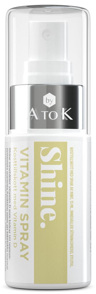 Shine Vitamin Spray innehåller vitamin D. Vitamin D i sprayform har högre upptagningsförmåga än tabletter och kaplsar. Bidrar till immunsystemets normala funktion samt att bibehålla normal muskelfunktion och benstomme. Med smak av mint.