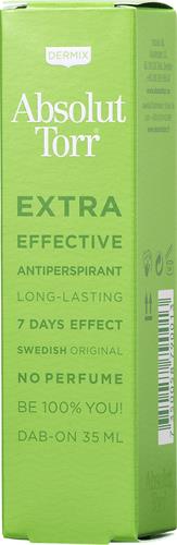 Absolut Torr Dab-on är ett effektivt verkande medel mot kraftig transpiration. Produkten är avsett att användas mot armsvett, handsvett och fotsvett. Den har långvarig effekt, vanligen 4-8 dagar.