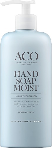 ACO Hand Soap Moist är en återfuktande handtvål som skonsamt rengör händerna och gör huden len och mjuk. Milt parfymerad.