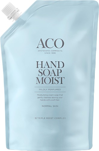 ACO Hand Soap Moist Refill är en återfuktande handtvål som skonsamt rengör händerna och gör huden len och mjuk. Milt parfymerad.