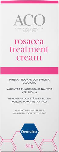 ACO Rosacea är en effektiv utbrottsbehandling för milda till måttliga symptom på rosacea. Krämen behandlar och minskar symptom av rosacea som rodnande kinder och ytliga blodkärl. Produkten lugnar och skyddar även huden mot externa triggerfaktorer. ACO Rosacea innehåller grönt pigment som döljer hudrodnad. Krämen kan användas dagligen och är lämplig för långtidsanvändning. Innehåller inte antibiotika eller parabener.