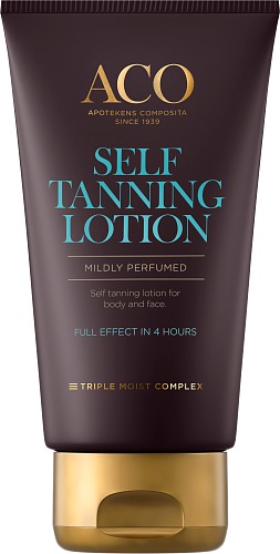 ACO Selftanning lotion är en intensivt fuktighetsgivande "brun utan sol" som ger naturligt solbrun färg utan solande. Lotionen absorberas snabbt utan att kladda. Den här lotionen innehåller ACO:s Triple Moist Complex som ger omedelbar, intensiv och långvarig djup återfuktning i huden.
