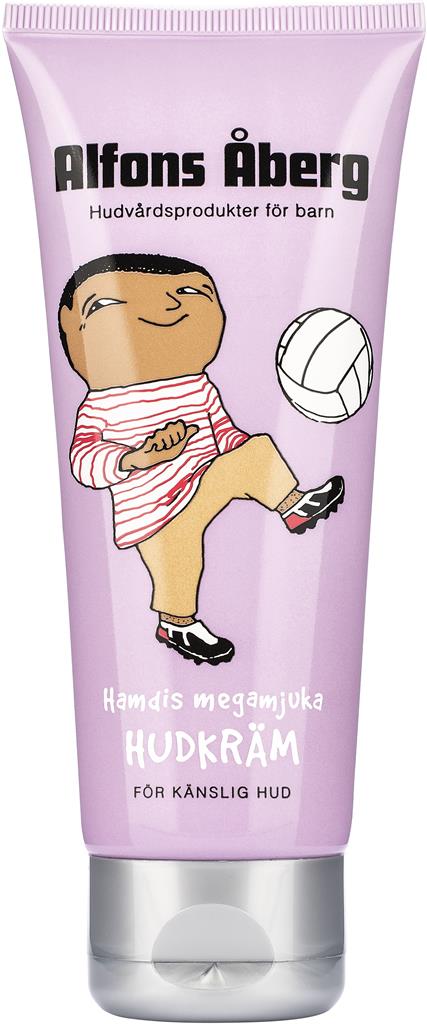 Hamdis Megamjuka Hudkräm är en mjukgörande kräm speciellt utvecklad för barn. Krämen har hög fetthalt och mjukgörande ingredienser såsom sheasmör, rapsolja och återfuktande glycerin. Innehåller även lugnande pantenol och allantoin. Oparfymerad.