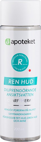 Apoteket Djuprengörande Ansiktsvatten är ett oparfymerat ansiktsvatten som förebygger fet, oren och finnig