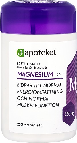 Ingredienser: Magnesiumcitrat, magnesiumhydroxid, färgämne (kalciumkarbonat,