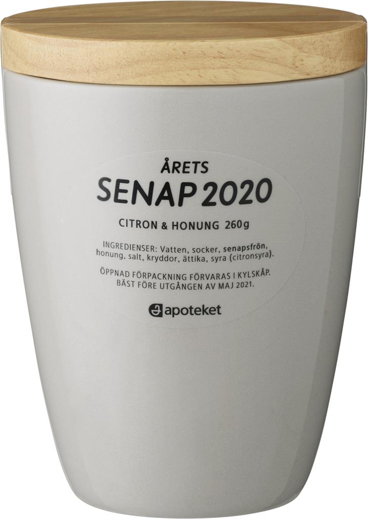 Apotekets Senap 2020 är en lätt grovkornig sötstark senap smaksatt med citron och honung. Årets senap är starkare än originalsenapen och den blev en klar favorit hos vår smakjury. Senapen kommer i en fin kiselgrå Höganäsburk i keramik.