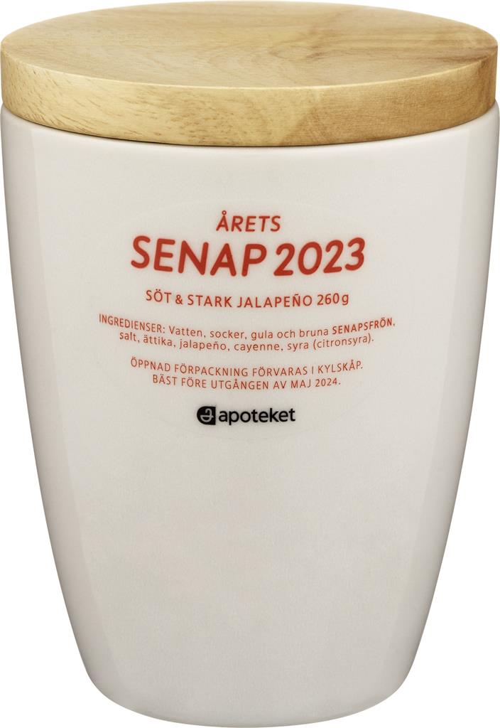 Apotekets Senap 2023 är en lätt grovkornig sötstark senap smaksatt med söt och stark jalapeño. Årets julsenap är starkare än originalsenapen och den blev framröstad som en klar vinnare både av apotekets smakjury och apotekets kundklubbsmedlemmar.