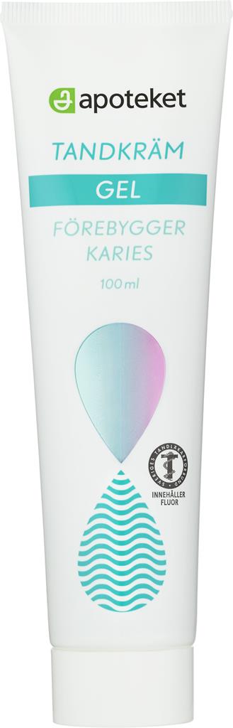 Apoteket Tandkräm Gel innehåller fluor som förebygger karies. Vegansk. Mintsmak. 100 ml.