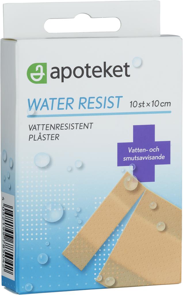 Plåster av vattenresistent, elastiskt material med god häftförmåga. 10 ark á 10×6 cm, kan klippas till önskad storlek.