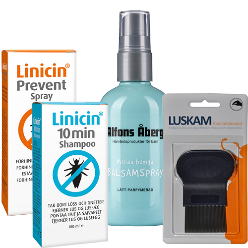 Huvudlöss försvinner i regel redan efter den första behandlingen. Men det kan vara bra att kamma igen för att vara säker. Här finns schampo, kam och balsam som gör det lättare att reda ut trassligt hår. Paketet innehåller också förebyggande spray. Ajöss löss!