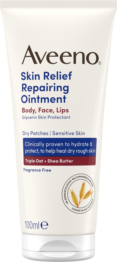 Aveeno® Skin Relief Repairing Ointment är  formulerad för att snabbt lugna och reparera