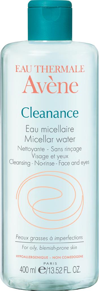 Avène Cleanance Micellar Water är ett rengörande ansiktsvatten som reglerar talgproduktionen. Den tar bort alla spår av make-up och smuts (även vattenfast makeup) och lämnar huden ren, matt och återfuktad. Avène Cleanance Micellar Water innehåller effektiva ingrediensen Monolaurin® som reglerar talgproduktionen och mattar ned den blanka huden. Avène Cleanance Micellar Water hämmar aknebakteriens aktivitet i huden.