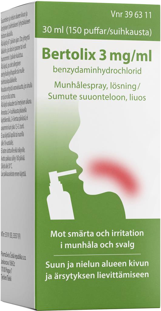 Bertolix, munhålespray, lösning 3 mg/ml, 150 puffar har tagits bort från mina favoriter
