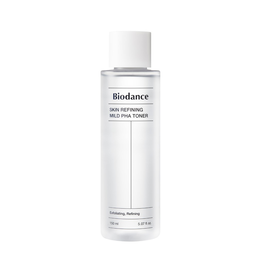 Biodance Skin Refining Mild PHA Toner är ett milt exfolierande ansiktsvatten utvecklat för att varsamt förfina hudens struktur utan att upplevas irriterande. Formulan innehåller PHA (gluconolakton), fermenterade ingredienser som ofta används inom koreansk hudvård samt fuktbindande ämnen som hjälper huden att behålla sin fuktbalans. Tonern bidrar till en mjukare och jämnare hudkänsla och gör huden mer mottaglig för efterföljande hudvård. Passar för känslig hud och för daglig användning efter tolerans.