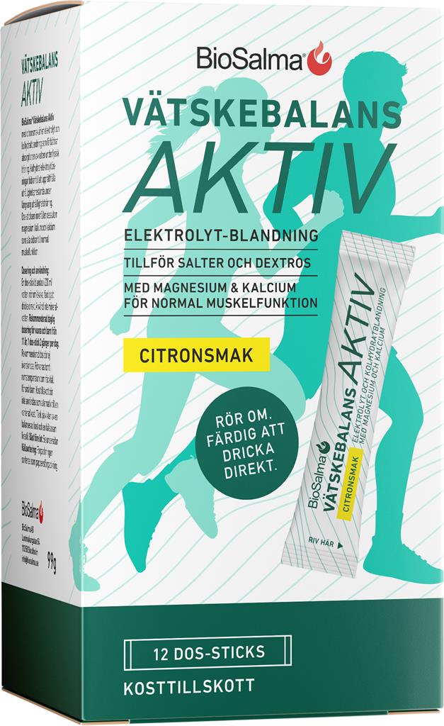 BioSalma® Vätskebalans Aktiv är ett kosttillskott i form av portionsförpackade dos-sticks med en kombination av elektrolyter och kolhydrater. Produkten är framtagen för att användas i samband med fysisk aktivitet. Kolhydrat-elektrolytlösningar bidrar till att upprätthålla uthållighetsprestanda vid långvarig uthållighetsträning och ökar upptaget av vatten under fysisk träning.