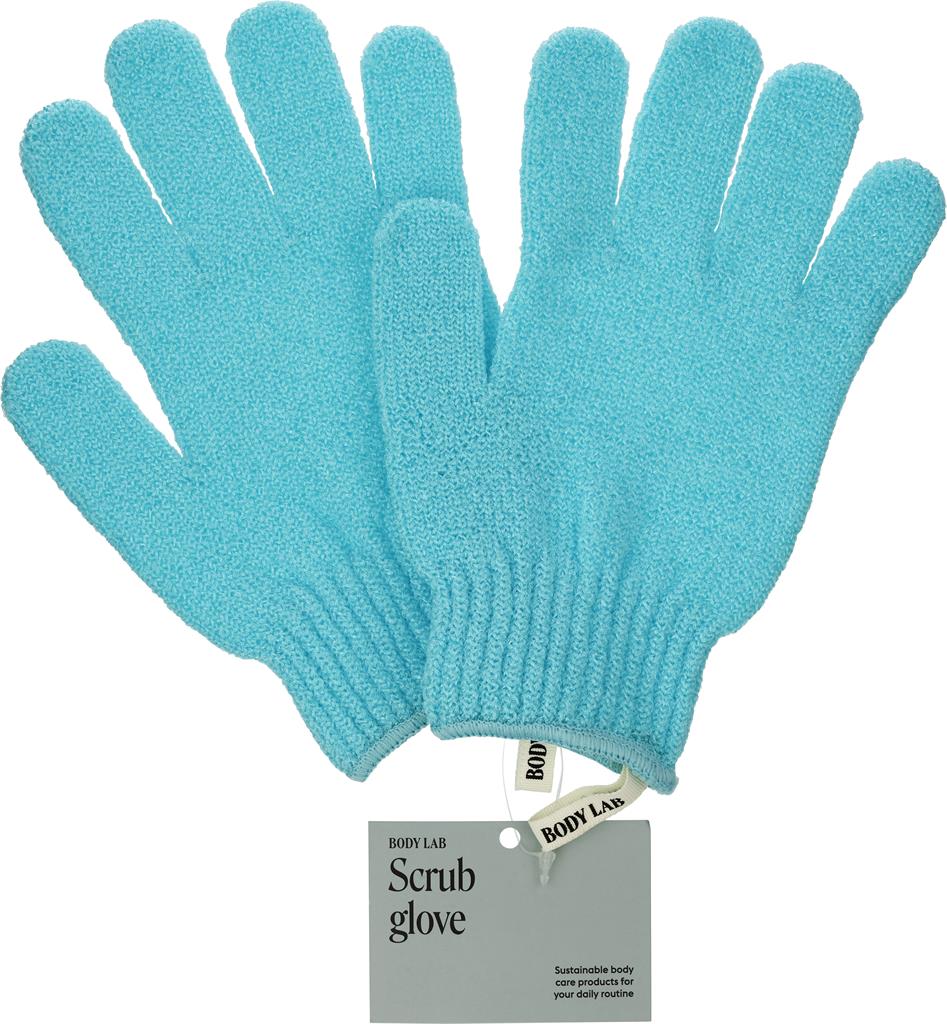 Skrubbhandske i nylon används för att effektivt avlägsna döda hudceller och ge