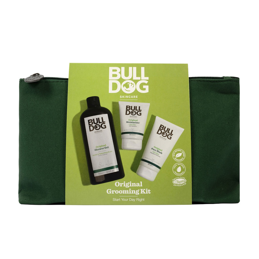Presentkit från Bulldog i en snygg necessär. Den innehåller tre produkter för varje mans dagliga kropps- och hudvårdsrutin.