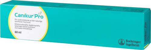 Canikur Pro är en välsmakande pasta i praktisk doseringsspruta till hund och katt för att förbättra tarmfloran under perioder av stress, antibiotikabehandling eller vid andra tillstånd som kan påverka den naturliga bakteriefloran i tarmen. Innehåller probiotika som normalt finns i frisk tarm och prebiotika för att förbättra tillväxt av välgörande bakterier i tarmen. Canikur Pro innehåller även en mineralrik lera som bland annat binder vätska i tarmen. Produkten kan även användas i förebyggande syfte.