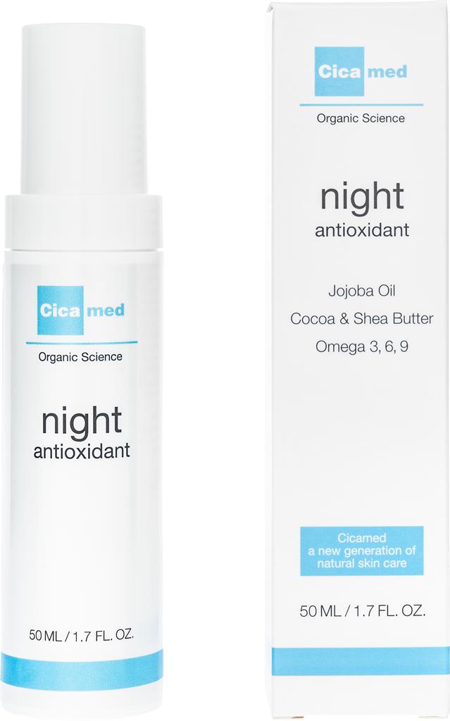 Cicamed night antioxidant är en reparerande och djupt återfuktande anti-aging nattkräm som stimulerar hudens återhämtning under natten. På natten kan antioxidanter och mjukgörande oljor verka ostört på djupet.