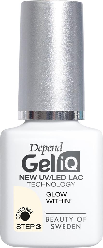 ytterligare ett tunt lager Gel iQ Färg och härda i 30 sekunder i UV/LED-lampan.  4. Topplack: Applicera ett tunt lager av Gel