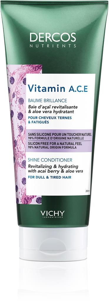 Nutrients Vitamin A.C.E Conditioner är ett vårdande balsam anpassat för trist och livlöst hår. Krämig konsistens som snabbt går in i håret och gör det mjukt och ger det näring. Formulerad med A-, Cg- och E-vitamin samt extrakt av aloe vera och acai. Innehåller ingredienser av naturligt ursprung. Vid användning av hela Vitamin A.C.E-serien får håret ett sublimt utseende med mer glans.