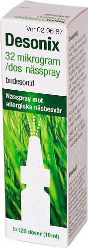 Desonix innehåller kortison (budesonid) som verkar avsvällande och kan hjälpa vid rinnsnuva, nästäppa, nysningar och/eller klåda i näsan orsakad av allergi mot t.ex. pollen. Även om du inte känner lindring direkt är det bra att fortsätta för att symtomen ska försvinna. Läs alltid bipacksedeln noga eller gå in på fass.se för mer information.