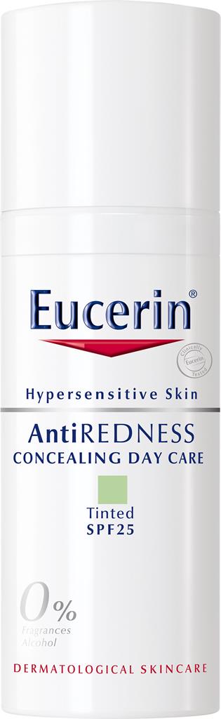Eucerin AntiREDNESS Concealing Day Care SPF 25 är en dagkräm som är speciellt utvecklad för överkänslig och även för hud som har benägenhet för rodnad och synliga blodkärl. Dagkrämen lugnar huden omedelbart och långvarigt samt reducerar rodnad. Den aktiva ingrediensen SymSitive reglerar hudens känslighet effektivt där hyperaktivitet uppstår genom att omedelbart lugna huden. Licochalcone A reducerar rodnad effektivt och långvarigt. Licochalcone A reducerar effektivt rodnad samtidigt som neutraliserade gröna färgpigment döljer röd hud direkt och ger en jämn hudton. Eucerin AntiREDNESS Concealing Day Care SPF 25 gör att huden genast känns behaglig med en långtidsverkande effekt. Krämen har en minimalistisk formula som reducerar risken för intolerans eller hudreaktioner och en luftfri förpackning skyddar från bakterier. Kliniska och dermatologiska tester visar på god effekt och hudvänlighet på hyperkänslig hud. Utan konserveringsmedel, paraffiner, parfym, alkohol, färgämnen och emulgatorer. Följ anvisningarna på produkten/bruksanvisningen.