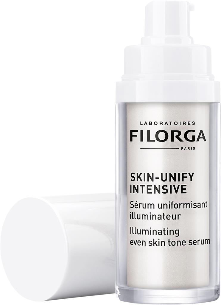 Filorga Skin-Unify Intensive Illuminating even skin tone Serum är ett uppljusande och utjämnande serum som motverkar pigmentfläckar och jobbar för en jämnare hudton och mer lyster. En sammansättning av 3 aktiva ingredienser [C-vitamin + glabridin + algextrakt] reducerar effektivt pigmentfläckar. En förnyande aktiv ingrediens ger en jämnare hudton. Hyaluronsyra återuppbygger fylligheten i huden och i kombination med en utjämnande aktiv ingrediens ger den vacker lyster till huden på nytt. Lätt konsistens som smälter in i huden. Följ anvisningarna på produkten/bruksanvisningen.