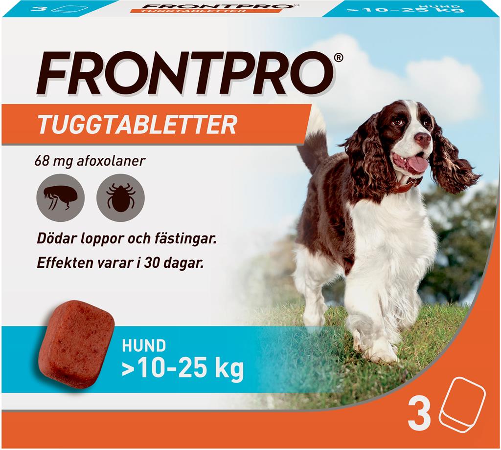 Frontpro® 68 mg, 3 tuggtabletter i blisterförpackning.
