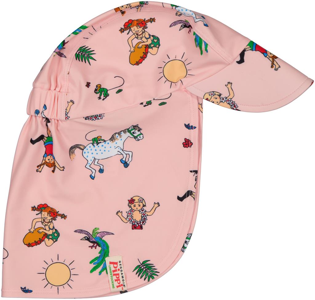 UV-hatt med Pippi-motiv, snabbtorkande UV-50+ skydd. Skärm och cape ger extra skydd för ansikte och nacke.