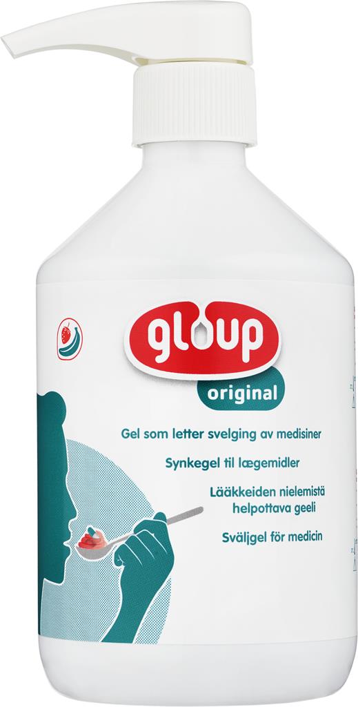 Gloup gel är en sväljgel som underlättar intaget av tabletter. Du slipper krossa eller förändra läkemedlet. Gelen fuktar munnen och halsen och är lätt att svälja. Utformad för att omedelbart brytas ned i magsäcken, och har ingen påverkan på absorptionen av läkemedlet