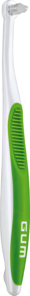 Tandborste med litet konformat borsthuvud för att nå svåråtkomliga ställen i munnen. Bra vid tandställningar och implantat.