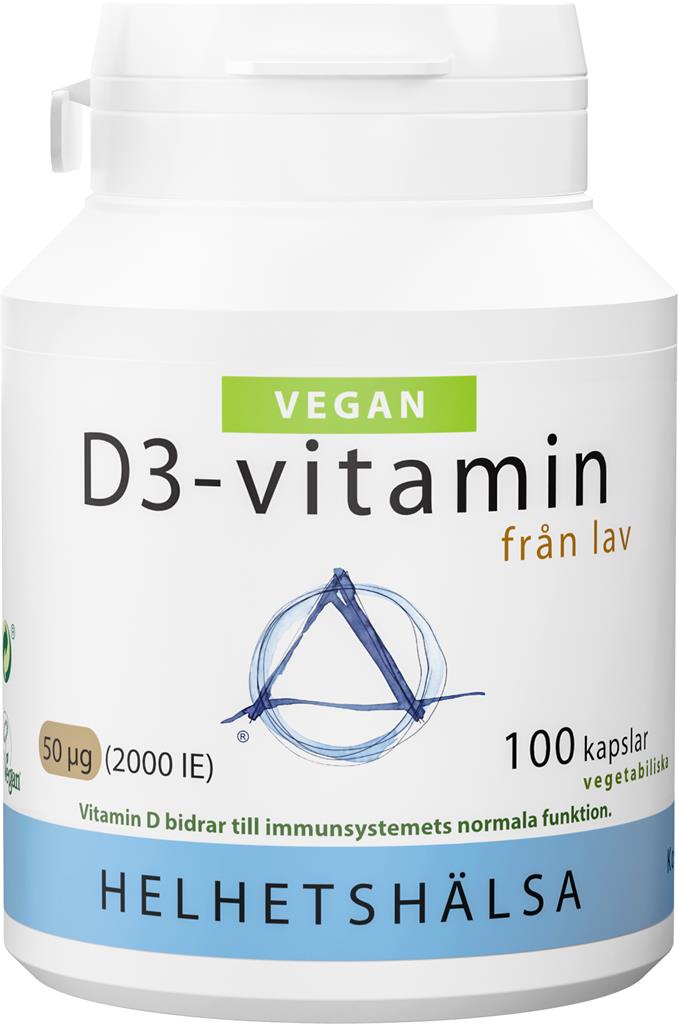D3-vitamin Vegan är ett kosttillskott som innehåller 50 mikrogram D-vitamin,