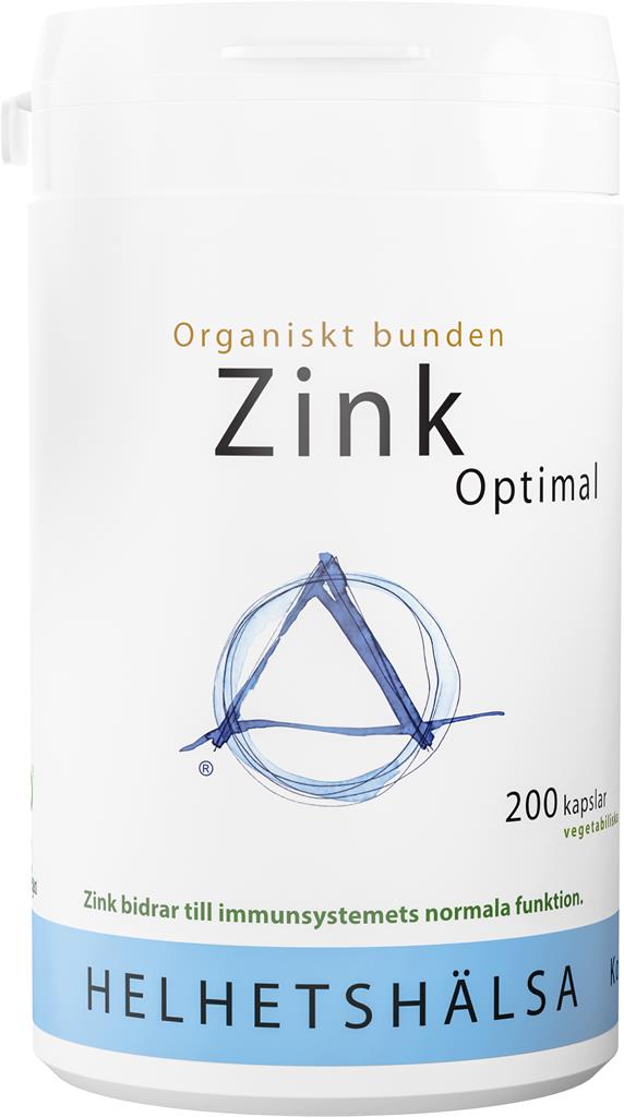 Helhetshälsa ZinkOptimal är ett kosttillskott som innehåller zink. Zink är ett mineral som har en betydelse för flera av kroppens funktioner. Produkten är vegansk och kommer i vegetabiliska kapslar.