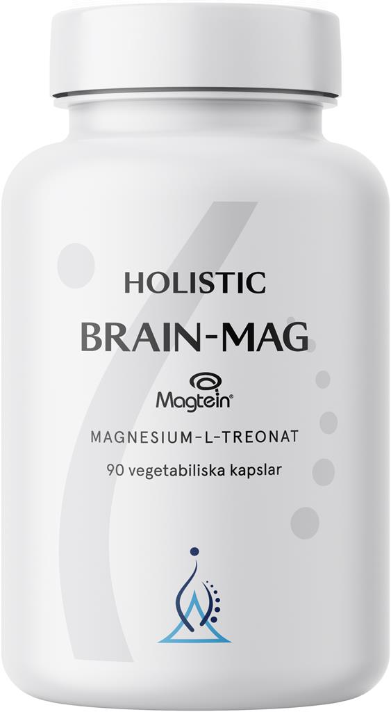 Brain-Mag från Holistic innehåller magnesium i form av magnesium-L-treonat från Magtein®. Varje kapsel innehåller 667 mg Magtein®, motsvarande 48 mg magnesium. Produkten är utvecklad för dagligt intag och kapslarna är vegetabiliska.