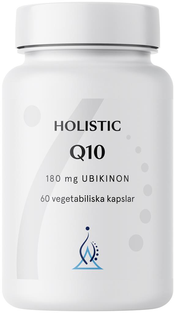 Holistic Q10 är ett kosttillskott med coenzym Q10 (ubikinon), en vitaminliknande substans som förekommer naturligt i kroppens celler. Q10 förekommer i alla celler, men dess högsta koncentrationer finns i organ som kräver mycket energi, exempelvis hjärtat, levern och immunsystemets celler. När vi åldras minskar produktionen av Q10 naturligt i vår kropp. Produkten framställs genom fermentering och är identiskt med den form som kroppen själv producerar.