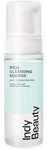 Indy Beauty Rich Cleansing Mousse är en löddrande rengöringsmousse som effektivt och skonsamt avlägsnar makeup och orenheter utan att torka ut huden. Innehåller näckrosextrakt som gör huden lugn, uppfriskad och har antioxidativa egenskaper.