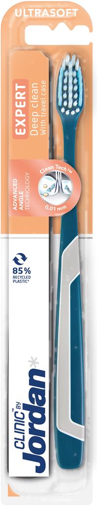 Jordan Clinic Expert Deep Clean är en tandborste framtagen för en extra effektiv rengöring av tänderna. Tandborstens Clean Tech borstteknologi är speciellt designad för en avancerad djuprengöring. Den mjuka och vinklade borsten tar effektivt bort plack från tänderna. Det ergonomiska handtaget ger ett bra grepp som gör det enkelt att borsta. Följ anvisningarna på produkten/bruksanvisningen.