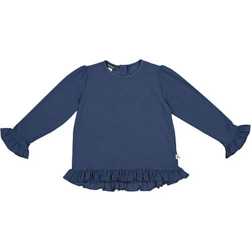 Kalani Frill UV Top, stilfull och funktionell långärmad UV-tröja från Kalani med solskyddsfaktor 50+. Tröjan är gjord av ett tunt material som andas, och som är OEKO-TEX 100 certifierat. Tröjan kan exempelvis användas på såväl förskolan som stranden.
