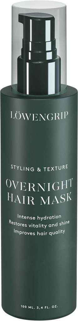 Löwengrip Styling & Texture Overnight Hair mask är en leave-in hårmask som reparerar, stärker och ger håret nytt liv utan att tynga ner. Förbättrar hårkvaliteten och framhäver hårfärgen med ny lyster och glans. Reparerar och bygger upp både friska och skadade fjällskikt samt ger ett kraftfullt skydd mot yttre påfrestningar. Absorberas direkt. Appliceras i längderna på torrt hår, låt verka under natten. Skölj ej ur.